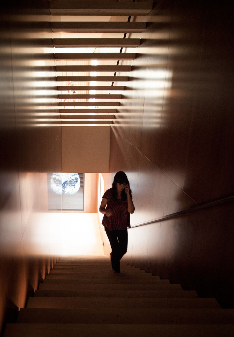 The library has floor-to-ceiling wooden shelves suggesting that even the books can serve as future space lining. From this space as well, there is a spectacular view looking out on the city of São Paulo, framed by a window that interrupts the punctuated sequence of the modules of the bookstand.