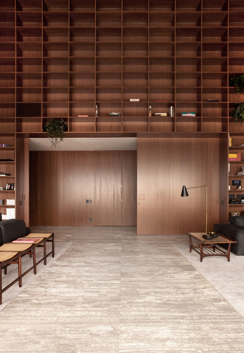 Furthermore, the fundamental premise was for the architecture to create a cozy and solemn atmosphere, where the fixed furniture of the room – designed especially for this place – would be in harmony with the classical design objects – such as the sofas and chairs. Among the selected pieces are original Brazilian, Scandinavian and Italian designs signed by Hugo França, Hans Wegner, Franco Albini, Gio Ponti among others.