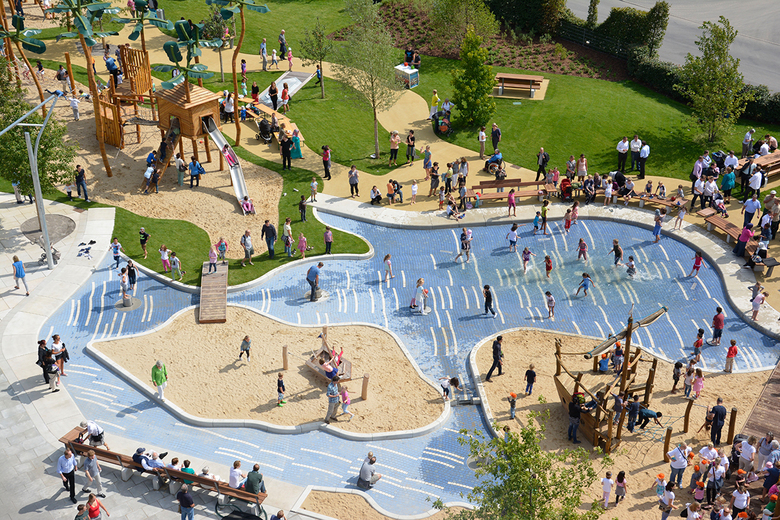 Der Grasbrookpark in der HafenCity Hamburg erfreut sich als vielseitig gestalteter, grüner Spielpark als einer der beliebtesten Hamburger Spielparks. Die sanfte Modellierung des Geländes schafft unterschiedliche Aufenthaltsqualitäten für ruhige und belebte Bereiche. Eingefasst ist der Park von „Heckenschiffen“ aus geschnittenen Pflanzen. Neben Spiel- und Klettergeräten bildet ein Wasserspielbereich mit einem Wasserbecken und drei mäandernden Wasserläufen, Fontänen und Wasserspendern das Zentrum der Parkanlage. Hier spiegelt sich der Entwurfsgedanke einer breitgefächerten Elbe mit vielen Elbinseln wider.