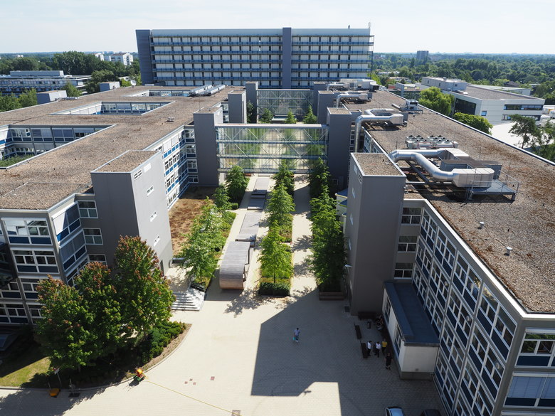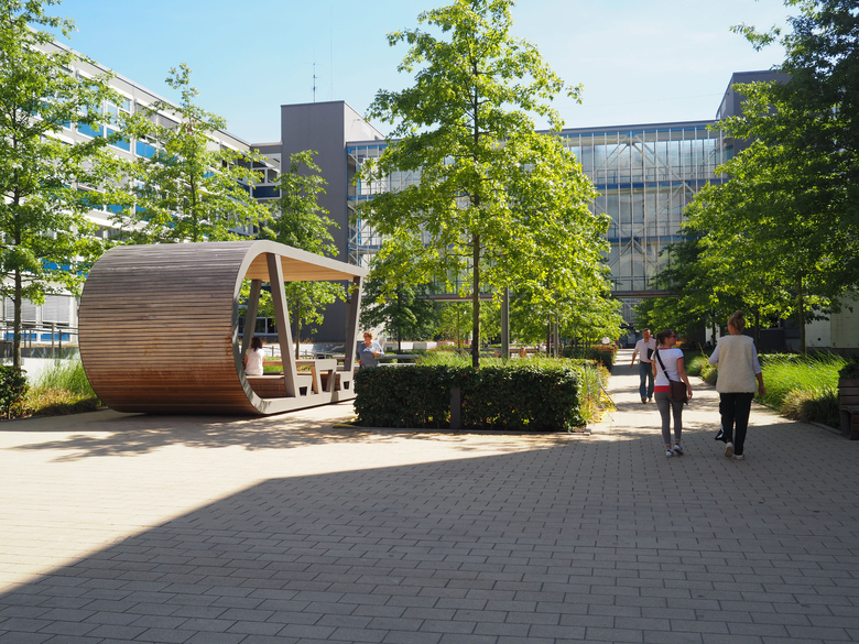Die Keimzelle des Otto-Firmengeländes in Hamburg- Bramfeld mit seinem ursprünglich durch logistische Nutzung geprägten Außenraum soll zum Campus werden. Ein Ort mit Aufenthaltsqualität, der zum Treffen und Arbeiten im Freien einlädt, aber auch ein Ort der Kommunikation mit Nischen zum Rückzug.