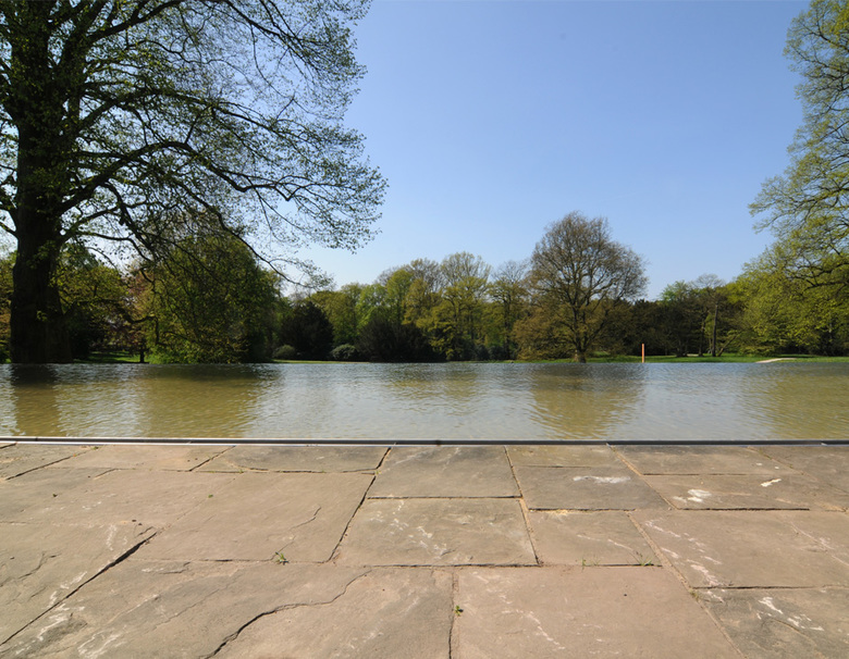 Wenige künstlerische Ansätze wurden behutsam, aber gezielt, in den Park integriert. So bilden heute Teilbereiche des Parks im Süden eine topografische Skulptur, im Osten spiegelt ein rechteckiger „Wasser-Spiegel“ den Himmel, im Nordwesten entstanden der „magische Baumkreis“ und die von einem Wasserfilm überzogene Steinbank, die gleichzeitig den Geländeversprung aufnimmt.