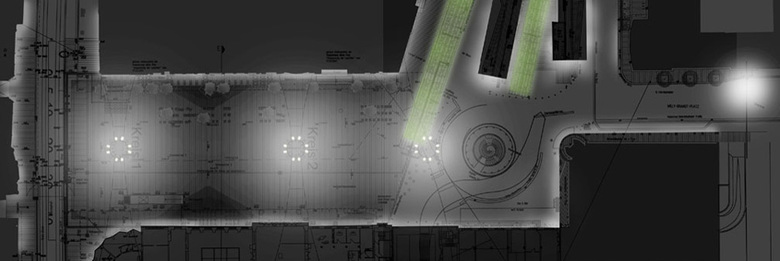 Über die Wasserbecken-Rotunde, die zugleich den Fußgängereingang zur Tiefgarage darstellt, wird der Platz mit dem ebenfalls neu gestalteten Busbahnhof verbunden. Und auch dieser wird in die räumlich-ästhetische Qualität des Willy-Brandt-Platzes eingebunden: Ein schwebendes „Mikado“ aus geschnittenen Platanen und gläsernen Riegeln definiert Raumkanten sowie Übergänge und dient als Filter. Die Platzfläche darunter bleibt offen, großzügig und überschaubar.