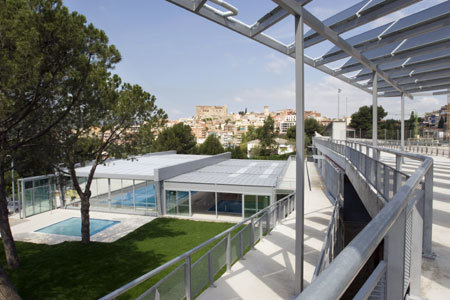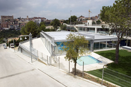 The Adaptation of the Sports Area of El Papiol transforms the limits between three existing facilities: football field, sports centre and swimming pools, by a connecting axis. This gives place to a pedestrian promenade crossing the sports area from East to West, organising accesses and becoming the new spaces' roof. The construction has been in process between 2003 and 2009, gradually substituting old buildings.