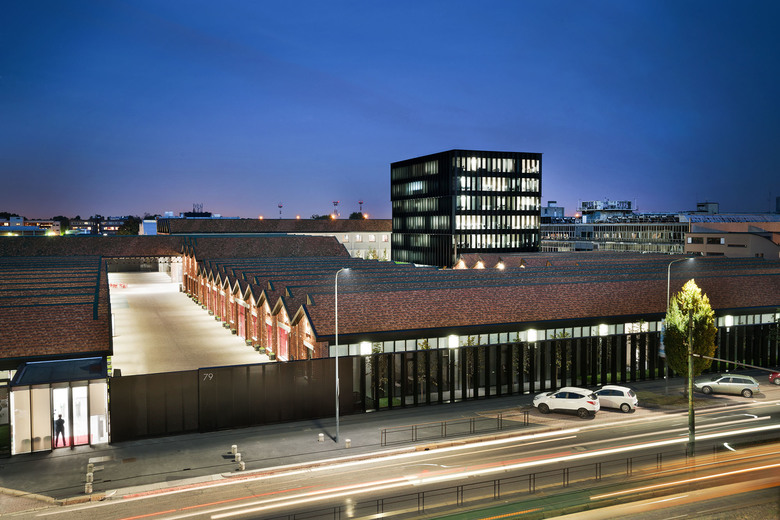 The redevelopment project of the old Caproni factory focuses on enhancing the stylistic features of the 1920s’ architecture and aims to transform this old plant into the new Gucci Headquarters in Milan. The abandoned industrial warehouses, covered by a shed style roof that lets zenith light flow into the interiors and characterized by modular structural bays, create through the spatial layout seamless interaction between the inside and the outside. The large hangarm that now hosts events and fashion shows, and the new six-storey tower, which interacts closely with the old constructions, stand out within the site area. Covered with a regular pattern of sunscreens, the new building breaks down the site’s symmetry and generates a powerful chromatic relations with the red-coloured exposed bricks of the low-level warehouse. Pedestrian paths run between the buildings, which are mainly located on the ground floor, in a sequence of solid structures and empty spaces in which landscaping plays a key role.