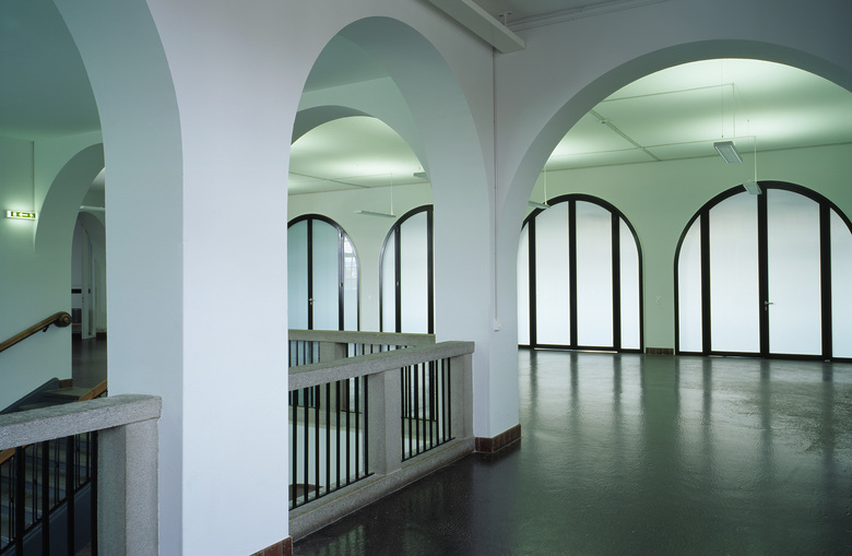 Im Inneren wurde durch geschickte Organisation der Grundrisse zusätzliche Räume verfügbar. Im zweiten Obergeschoss wurde daraus sogar ein Singsaal bzw. unter Einbezug der Halle ein Versammlungsraum. Zur Klärung von unübersichtlichen oder verbauten Situationen wurde nur örtlich eingegriffen.