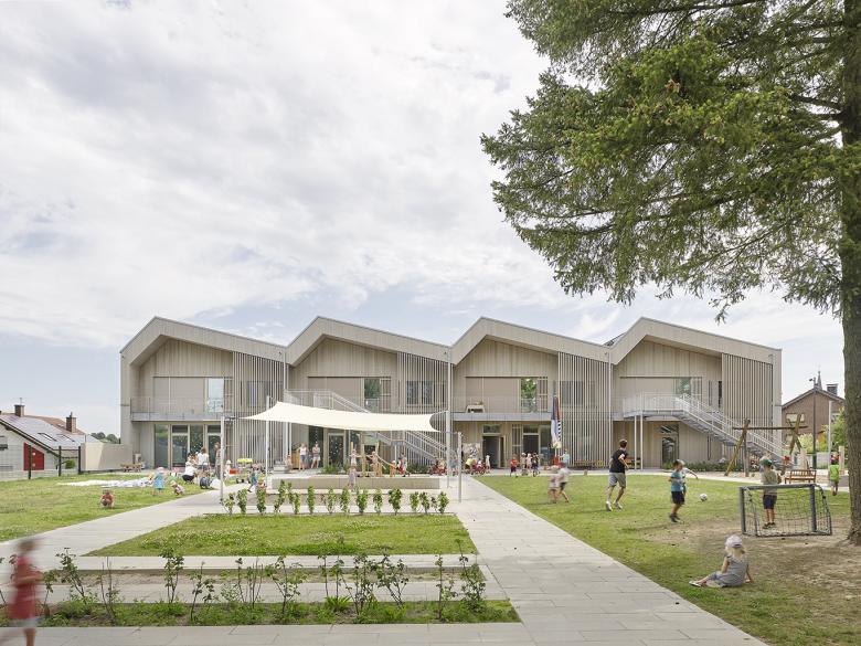 Ansicht Ost: Fassade-Eingang Kindertagesstätte