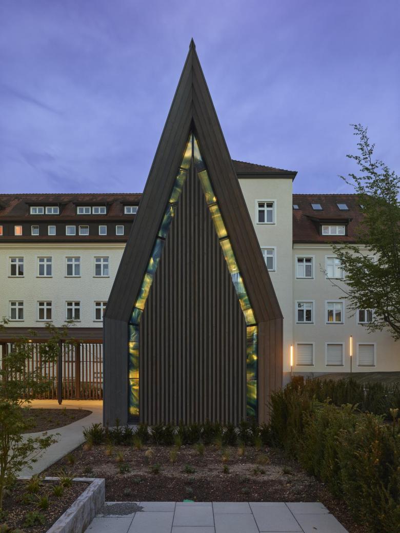 Die Kapelle bildet in Bezug auf Materialität und in Ihrem filigranen Erscheinungsbild den Kontrapunkt zur umgebenden Klosterarchitektur und wird ohne sichtbare christliche Insignien als besonderer Ort wahrgenommen.