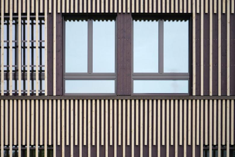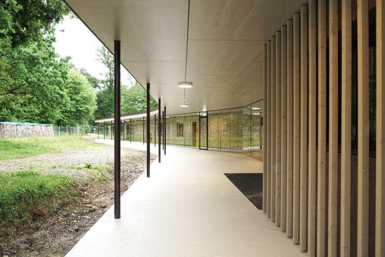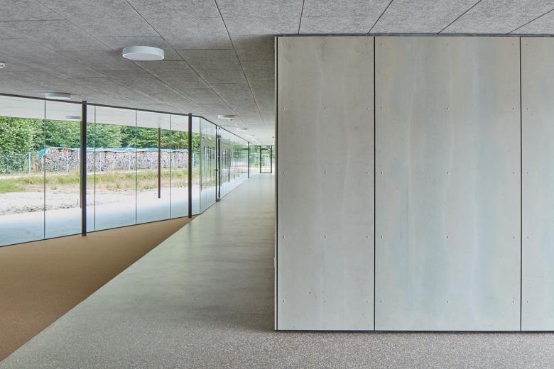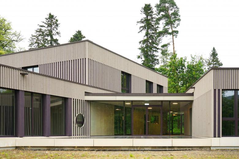 Der Neubau bildet den Abschluss der Bebauung auf dem Ostareal des Paul Scherrer Institutes. Umgeben von Wald nimmt er Bezug zu den Aussenräumen und der immer enger werdenden Perimeters.