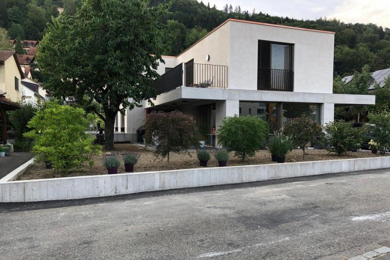 Das Umgebungskonzept vom Büro naef landschaftsarchitekten gmbh aus Brugg bildet eine wichtige Grundlage für das Projekt und stärkt die architektonische Disposition.
