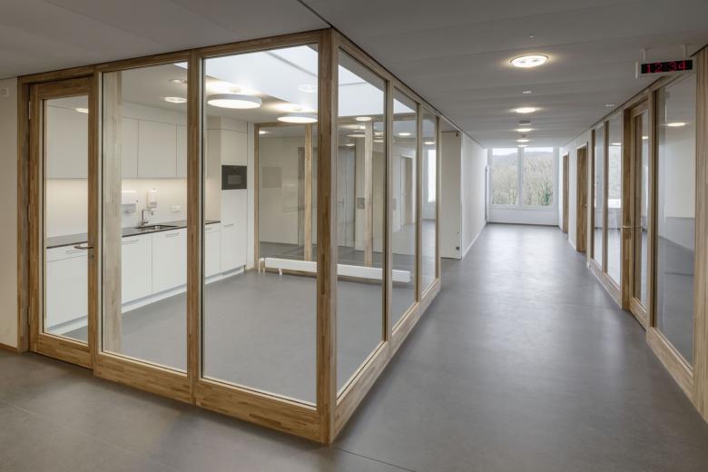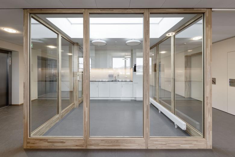 Der bestehende Innenhof der aarReha ist das ruhige Zentrum des Gebäudekomplexes. Von grosser Bedeutung ist die Funktion des Hofs als Lichtfänger für alle angrenzenden Räume. Um diese Qualität nicht zu mindern soll durch eine Erweiterung die Fassadenabwicklung gegen den Hof so wenig wie möglich durch Einbauten reduziert werden. Die Hoffläche soll weitgehend erhalten und die Fassadenfläche zum Hof durch partielle Aufstockung vergrössert werden.