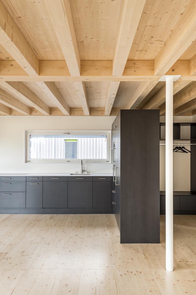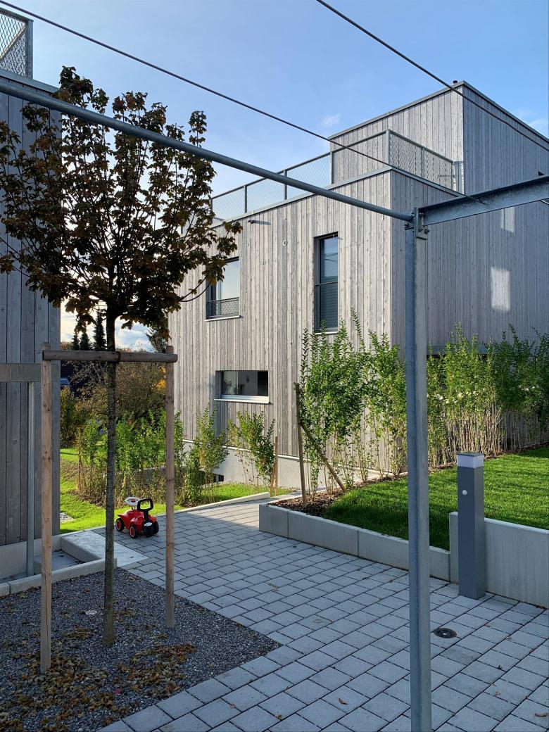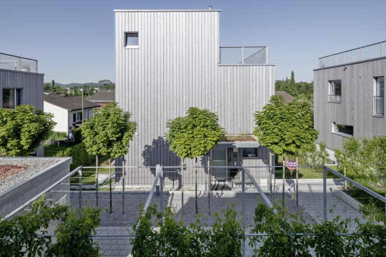 Die kleinen freistehenden, architektonisch identischen Holzhäuser sollen der heutigen und zukünftigen gesellschaftlichen Familienentwicklung eine wirtschaftliche Grundstruktur bieten.