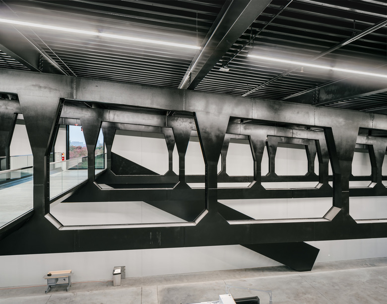 Dieser wird stützenfrei über 45 m von 11 maßangefertigten, lasergeschnittenen Stahlträgern überspannt. Einen besonderen Überblick erhalten die Besucher durch einen offenen „Skywalk“, eine Brücke, die in 6,50 m Höhe als Teil der frei tragenden Deckenstruktur quer durch die Hauptträger hindurchläuft und so auch das filigrane Tragwerk räumlich erlebbar macht ("Structure as Space“).