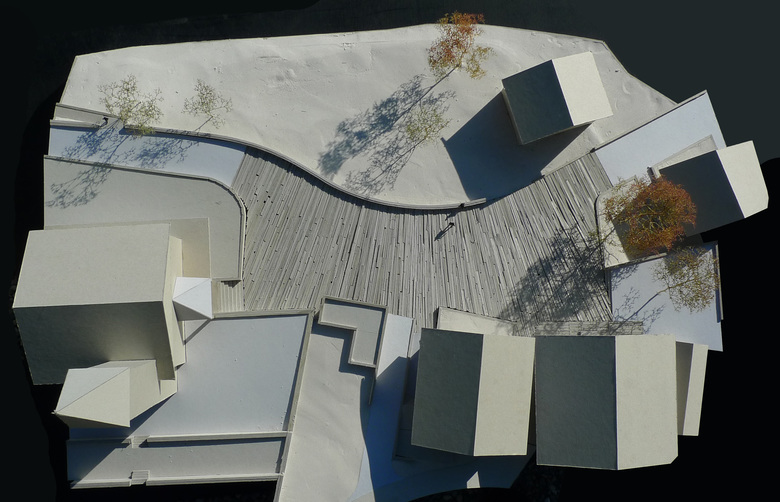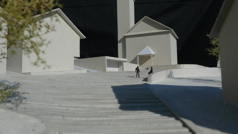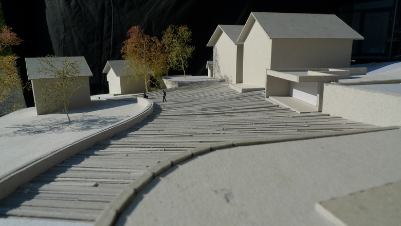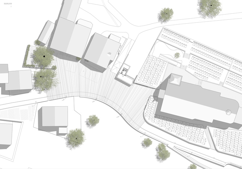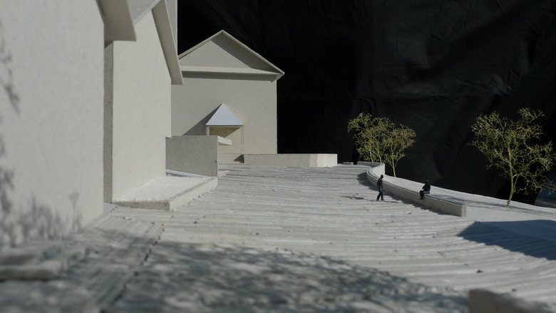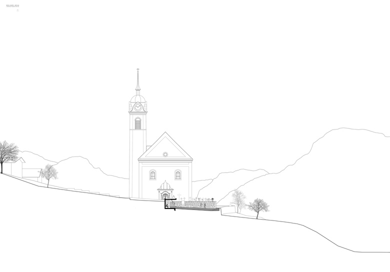 Idee und Konzept basieren auf der Geschichte des Ortes. Der alte Weg der zum Kloster führt und seine stützende Mauer, bilden mit den gegenüberliegenden Häusern, der Kirche und deren Friedhofmauern einen Raum. Geschichte bildet Raum: Das Einzigartige des Ortes liegt darin, dass sich dieser Freiraum im Laufe der Geschichte gebildet hat. Nun scheint die Zeit reif zu sein, dass aus dem „Zwischenraum“ ein Platz wird.