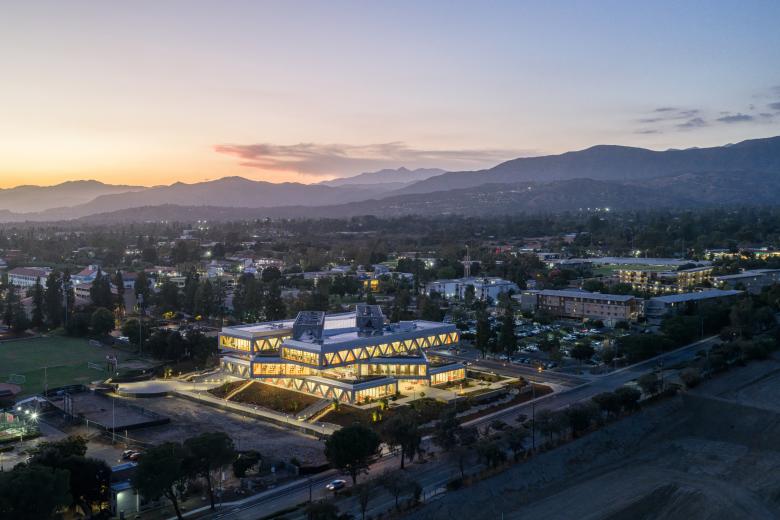 As day turns to night, the Robert Day Sciences Center continues to serve as a beacon for the confluence of scientific ideas, research, and innovation. Standing illuminated against the backdrop of the San Gabriel Mountains, the center not only anchors CMC’s eastern gateway, but transforms the surrounding campus into a vibrant, inspiring place of discovery.