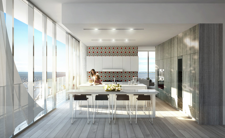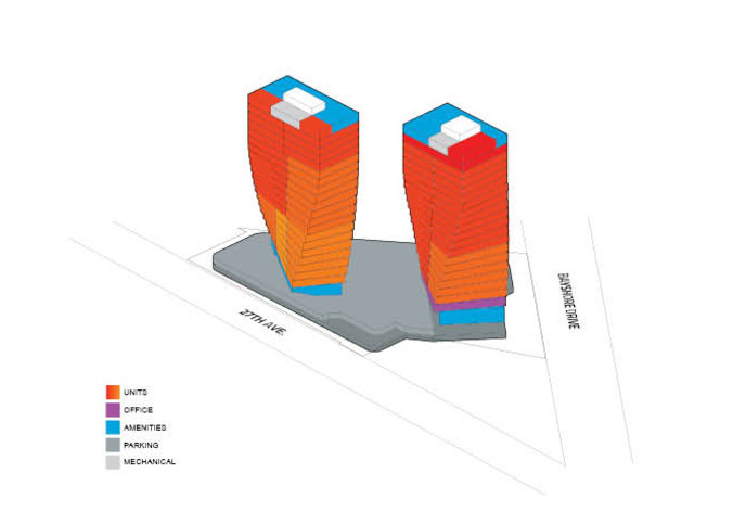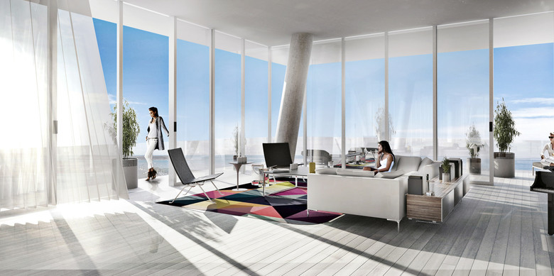 Miami has developed a contemporary condominium vernacular that combines brise soleil style balcony shading with floor-to-ceiling windows in order to best enjoy the panoramic water views of the area. We propose to elaborate on these indigenous elements and continue the evolution of the local condominium architecture.
