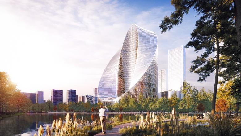 Prominently located in the heart of Yuhang District, Hangzhou, OPPO R&D Headquarters rests between a natural lake, an urban center, and a 10,000 square-meter park. As an anchor point along a major access road stretching east to west from Hangzhou, the OPPO R&D Headquarters Tower will be an iconic landmark and gateway to the Future Sci-Tech City and Hangzhou itself.
