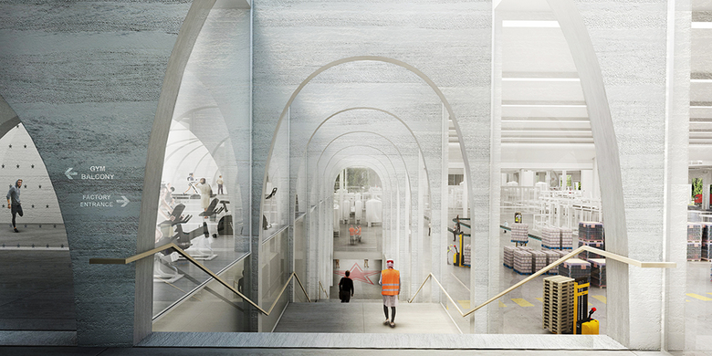 BIG’s design is evolved around a well-known architectural element: the archway. The simple and clear character of the expanding and contracting arches throughout the campus, create a multitude of spaces and experiences. Visitors and S.Pellegrino employees will walk through majestic vaults, covered tunnels, arcades and green pergolas that frame the history and heritage of the brand. The architecture’s seriality will reveal parts of the surrounding mountains, from the snowcapped summit to the flowing Brembo river.