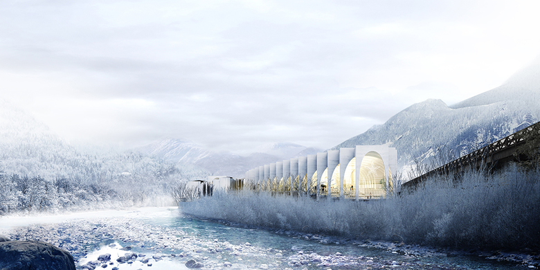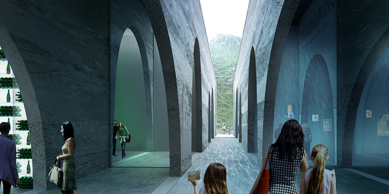 Shaped by the serpentine run of the Brembo river and the sloping Alpine mountainsides, BIG-Bjarke Ingels Group’s winning design for the new 17.500 m2 S.Pellegrino Flagship Factory embraces the surrounding forces of nature and taps into S.Pellegrino’s industrial heritage, guiding visitors through the 30-year journey of the natural mineral water.