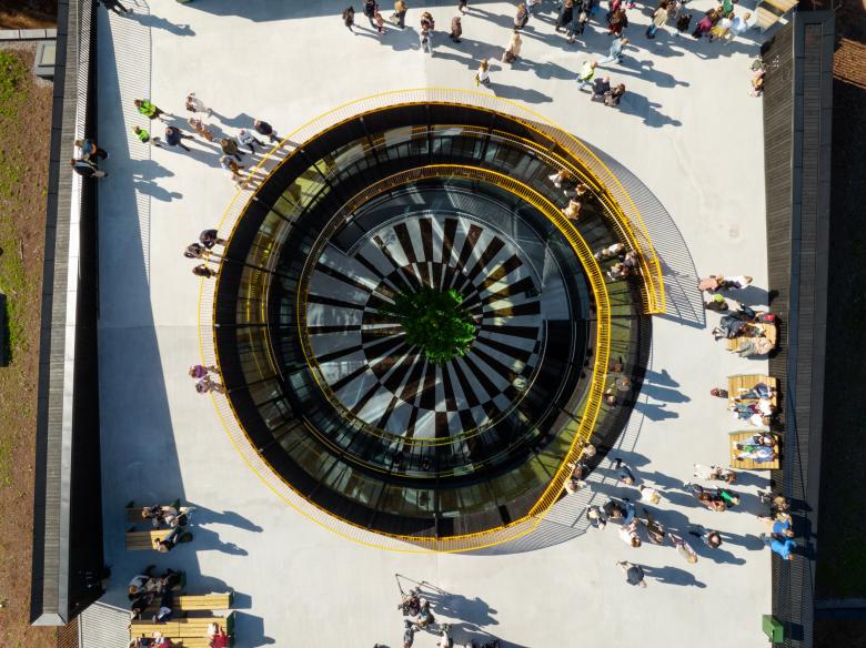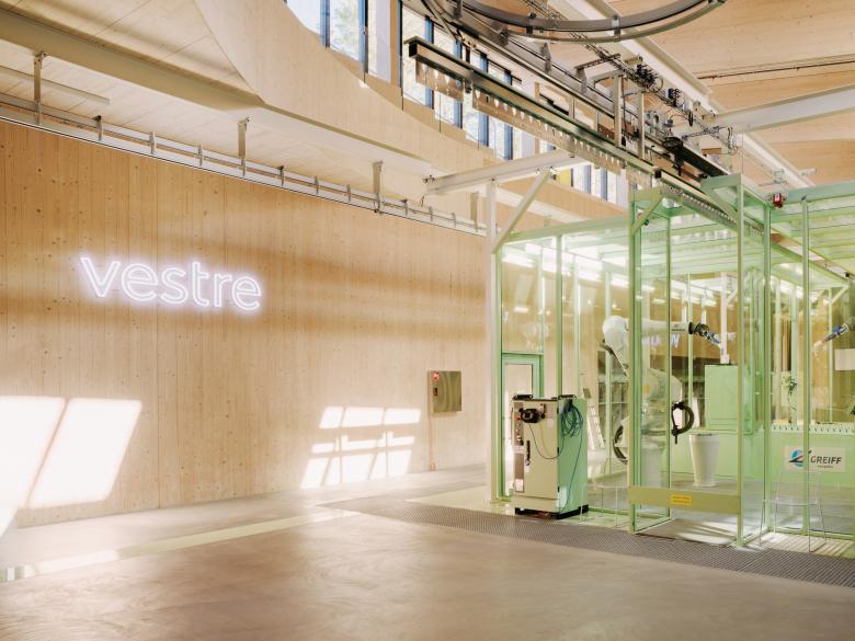 The heart of The Plus draws visitors into the exhibition centers Vestre Energy and Clean Water Center where the public can learn about energy, water and circular design. A logistics office with direct connections to all four production halls allows Vestre’s team to process logistical traffic with maximum efficiency. The central hub wraps around a public, circular courtyard where the latest outdoor furniture collections are displayed and changed according to the changing seasons. The courtyard doubles as a panopticon for visitors and staff to fully experience the factory’s production processes.