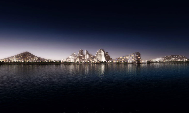 The Seven Peaks of Azerbaijan is a master plan for a Zero Energy resort and entertainment city on Zira Island situated within the Caspian Sea. Located within the crescent shaped bay of Azerbaijan’s capital Baku, Zira Island is designed to be a sustainable model for urban development, and an iconographic skyline recognizable from the city’s coastline.
