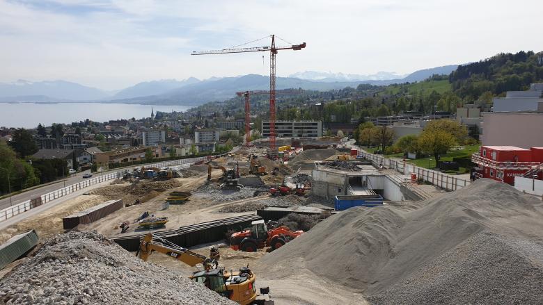 Eine bestehende Überbauung soll rückgebaut und die neue entstandene Fläche wieder überbaut werden. Die am Hang stehende und mit zehn Gebäuden bestückte neue Bebauung wird mittig eine Tiefgarage aufweisen.