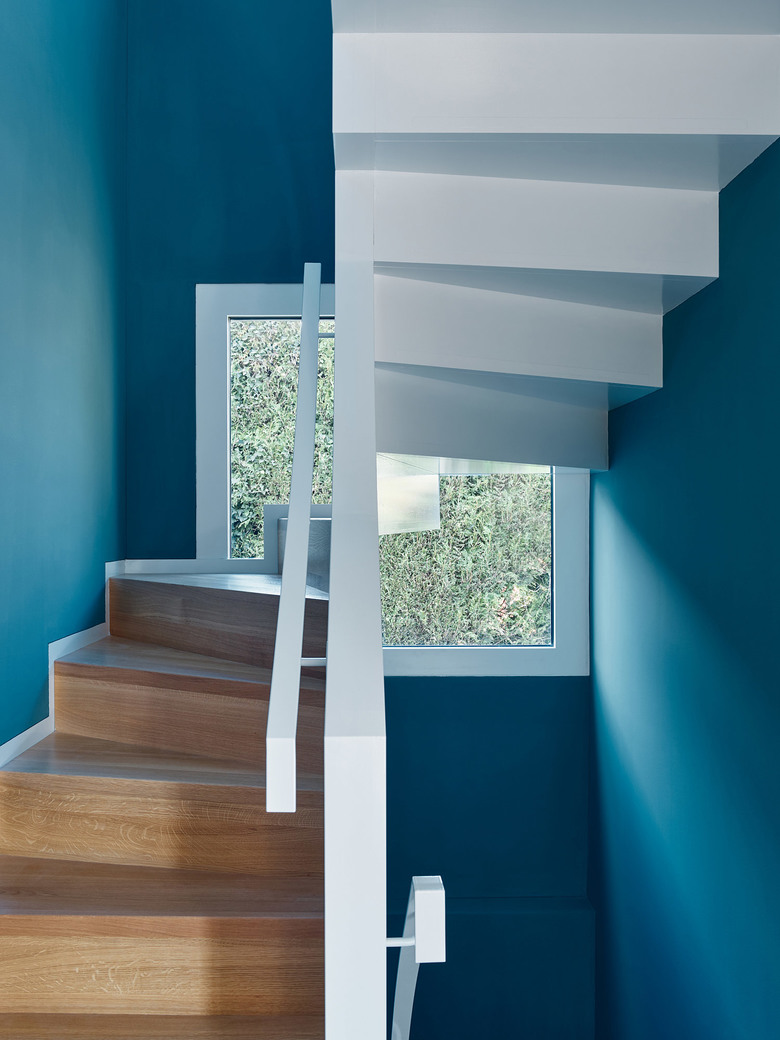 Die zentrale Aufgabe bestand darin, aus den zwei kleinen Geschosswohnungen ein Einfamilienhaus mit einer internen Treppe zu realisieren. Zusätzlich wurden die Räume im Wohngeschoss mittels Durchbrüchen grosszügiger gestaltet und auch die Fenster, neben der internen Treppe, der Küche und allen Nasszellen komplett neu erstellt. Die Materialisierung besteht aus einer Mischung alter Fischgrätparkettböden, Schreinerarbeiten sowie neuen Boden- und Wandbelägen.