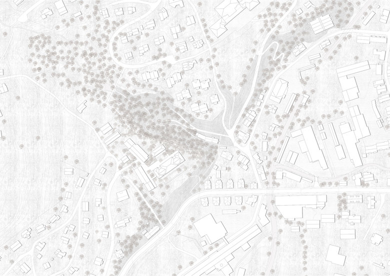 Zwei längliche, zum Hang hin liegende Neubauten ergänzen das bestehende Spitalgebäude und generieren damit ein neues gemeinschaftliches Ensemble. Der Erhalt des Waschhauses und des Gewächshauses helfen mit, die Balance zwischen Neu und Alt, sowie den gewachsenen Charakter zu stärken. Zusammengehalten werden die neuen und bestehenden Bauten durch eine reichhaltig gestaltete Erschliessungszone. Gewohnt wird somit nicht vorne oder hinten, sondern zum neuen Binnenraum hin.