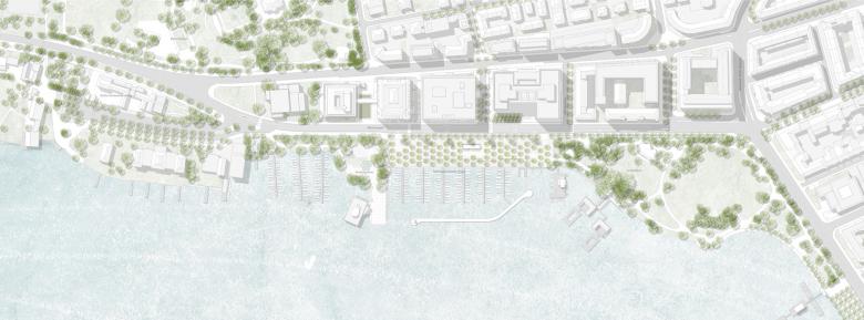 Mit dem Arboretum auf der einen und dem Wabengarten auf der anderen Seite liegt die Hafenpromenade eingespannt zwischen zwei wichtigen Zeitzeugen der Gartengeschichte. Beide Parkanlagen sind Ausdruck eines gesellschaftlichen Naturverständnisses: Wurde mit dem Bau des Arboretums 1881 eine idealisierte Natur unter wissenschaftlich-botanischen Aspekten entworfen, so repräsentiert der Wabengarten mit seiner klaren, formalen Gestaltung den Zeitgeist der Moderne. Mit der gegenwärtigen Klimadebatte, dem vehementen Ruf nach mehr Diversität und dem Befürworten von dynamischen, sukzessiven Prozessen wird zurzeit ein neues Naturideal salonfähig. Diese gesellschaftliche Veränderung soll sich in der Gestaltung der neuen Hafenpromenade widerspiegeln.