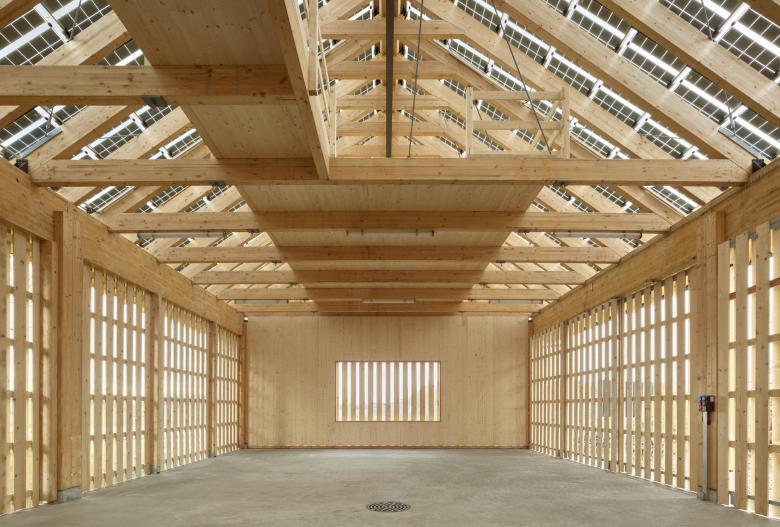 Das Projekt umfasst auch die Erhaltung und Ergänzung anstelle eines Neubaus sowie die Ergänzung eines ortsbildgeschützten Weilers-Ensembles in einer geschützten Moorlandschaft. Beim Stallumbau wurde Abbruchholz des Unterstandes wiederverwendet, und das Silo wurde in einen Regenwassertank umgewandelt. Das Solardach, das rhythmisch positionierte Solarzellen und braun gefärbte PV-Module aufweist, tritt sowohl von außen als auch von innen als fünfte Fassade des Dachs in Erscheinung und stellt einen Prototyp eines lichtdurchlässigen Solardaches ohne Unterdach dar.