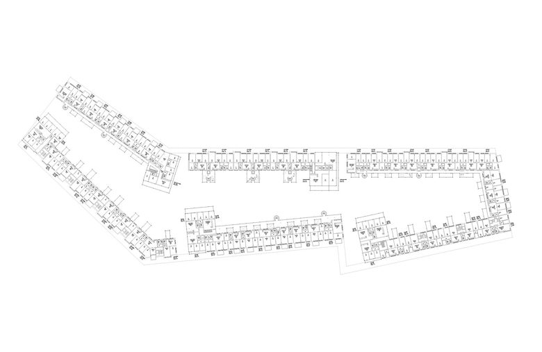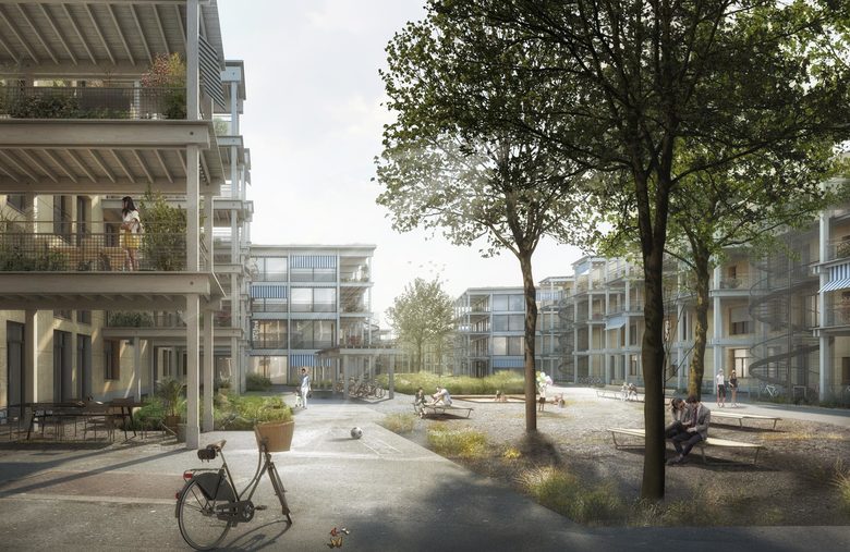 Das Projekt schlägt trotz der unterschiedlich geforderten Wohnungsstandards eine auf den ersten Blick einheitliche Struktur für die Bebauung vor. Im Vordergrund steht das (Zusammen)-Leben einer vielfältigen Gesellschaft aus verschiedenen sozialen Schichten und unterschiedlichen Altersgruppen um einen gemeinsamen Hof. Bei genauerem Betrachten fällt aber auf, dass durch das Grundgerüst ein differenzierter Ausdruck geschaffen wird. Die länglichen Zeilenbauten und die zum Hof quergestellten multifunktionalen Kopfbauten setzten die Wohnungsstandards nicht nur durch unterschiedliche Wohnungsgrössen um, sondern schaffen besonders bei den Aussenraum- und den Erschliessungstypologien Variation.