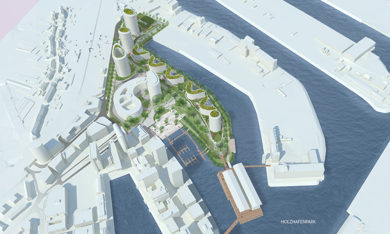 The Holzhafen Park is characterized by four elements which all contribute to the quality of life in the new area and stimulates to have a rest, to meet, to move, and motivated to pursue his work: