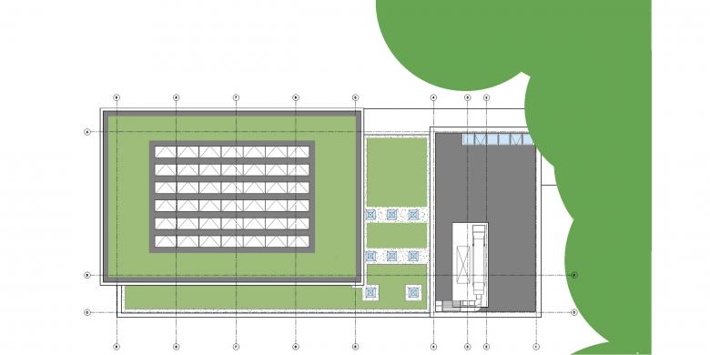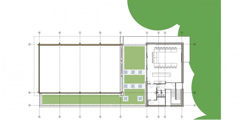 The wooden façade cladding and the main wooden structure mirror the high sustainable ambitions of the project and anchor the building in a natural way through color and material in the context, which is characterized by beautiful old trees