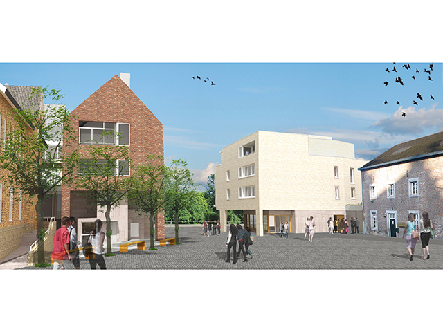 Phase 3 of the urban master plan for the historic center of Meerssen, developed in 1997, is now being realized. The different parts of this Master Plan as the extension of the marketplace, the realization of the Maison de Ville, with the Customer Contact Center of the municipality in conjunction with five apartments above and the apartment complex Nieuw Proosdij, located around the former, transformed monastery will be added to the already implemented plan components. The extension of the underground carparking phase 1 and the completion of the revitalized park, designed by landscape architect office Verbeek, are part of the final implementation of the Master Plan. This concludes a developement, which will make the center of Meerssen future-proof and adaptable to the ever-changing needs of the organism town. What was missing was the connection of the market square with the park in an urban structure, which allows the increased market square, as well as the enlarged Park to be embedded in an urban space frame. Coenen Sättele Architects, is responsible for the design and detailed final design of the Maison de Ville and the complex Maison Proosdij, including the garage and defined the contours of the design of public spaces.