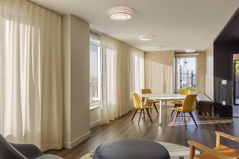 425 Grand Concourse is the largest Passive House (PHIUS) project in North America to date. This new mixed-use and mixed-income development creates 277 units of affordable housing. The two-story base houses a medical facility, supermarket, community support space, and a new student services center for CUNY Hostos—each also designed by Dattner Architects.