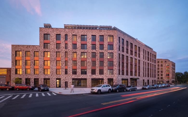 Vital Brookdale is an exemplary model of community-based housing plus healthcare. It is the first project in New York State’s Vital Brooklyn Initiative, a program designed to improve Central Brooklyn’s low-income residents’ access to health, wellness, and housing. The new two-building Passive House development is located in the Brownsville neighborhood, adjacent to Brookdale Hospital. The design and programming of the building set a new benchmark for high-quality, sustainable, health-focused, affordable housing mixed-use developments.