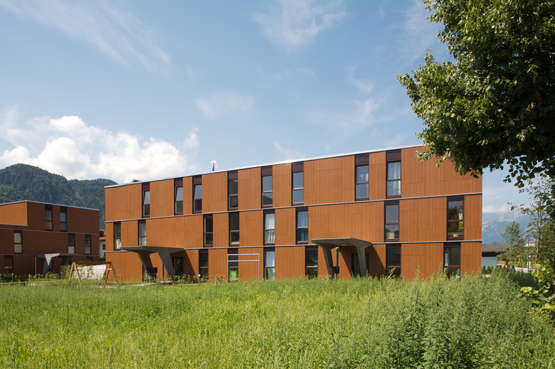Am östlichen Dorfeingang von Kundl konzipierte DIN A4 Architektur für einen Wettbewerb die Wohnanlage am Daxerfeld mit insgesamt 98 Wohneinheiten. Durch die Schaffung einer durchlässigen Struktur gliedert sich der Entwurf in die Umgebung der Dorfrandbebauung ein, definierte Außenräume vermitteln trotz Lage des Grundstückes am Ortsrand Geborgenheit.
