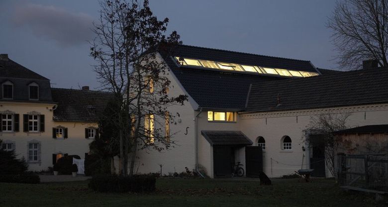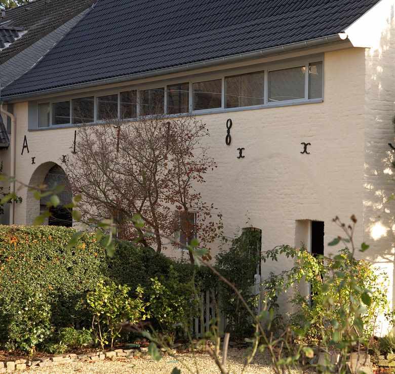 Historische Strukturen werden durch Farb- und Materialkontraste respektvoll mit Liebe zum Detail in ein harmonisch-rhythmisches Spannungsfeld gesetzt. Historie tritt stets in einen aktiven zeitlosen Dialog durch geradlinig-scharfkantig hergestellte Raumstrukturen mit Materialien wie bspw. Lehmputz, geschlämmtes Ziegelmauerwerk, - glatte, weiss gestrichene mit Gipskarton beplankte Holzständerwände, geölte Schwarzstahl-Konstruktionen mit Handläufen aus Eiche sowie lasierten Fichteflächen.