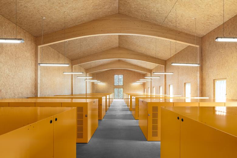 Ein Gebäude aus Holz bietet ausreichend Platz für Golfbags und Elektro-Golfcars: eine Verkürzung der Bauzeit wurde durch Vormontage möglich. Bei Bedarf ist das Gebäude durch das Einziehen eines zusätzlichen Geschosses erweiterbar.