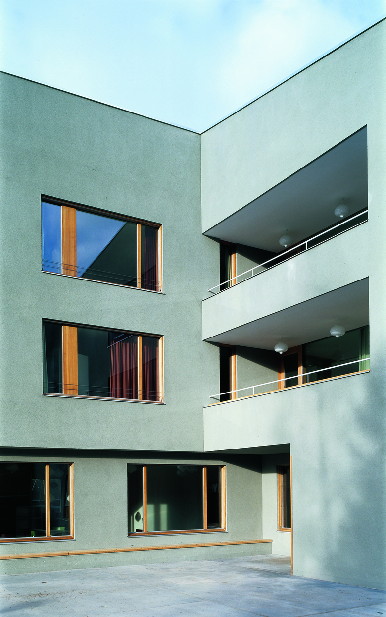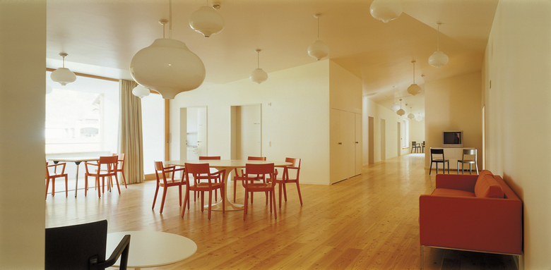 Der Neubau des Altersheims unterstützt mit seiner räumlichen Struktur und der Art des Betriebes das Ideal einer Wohn- und Pflegegruppe als Wohngemeinschaft. Dafür geschaffene räumlich wirksame Privatheitsschwellen, welche den Weg ins Innere des Gebäudes rhythmisieren, fördern die Stimmung eines normalen Wohnhauses.