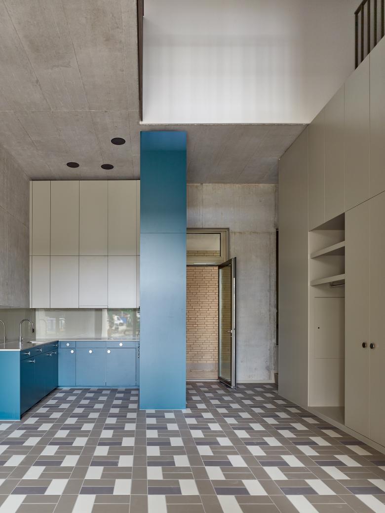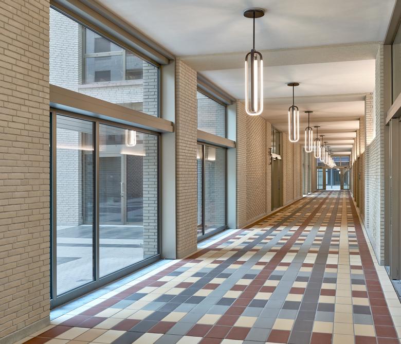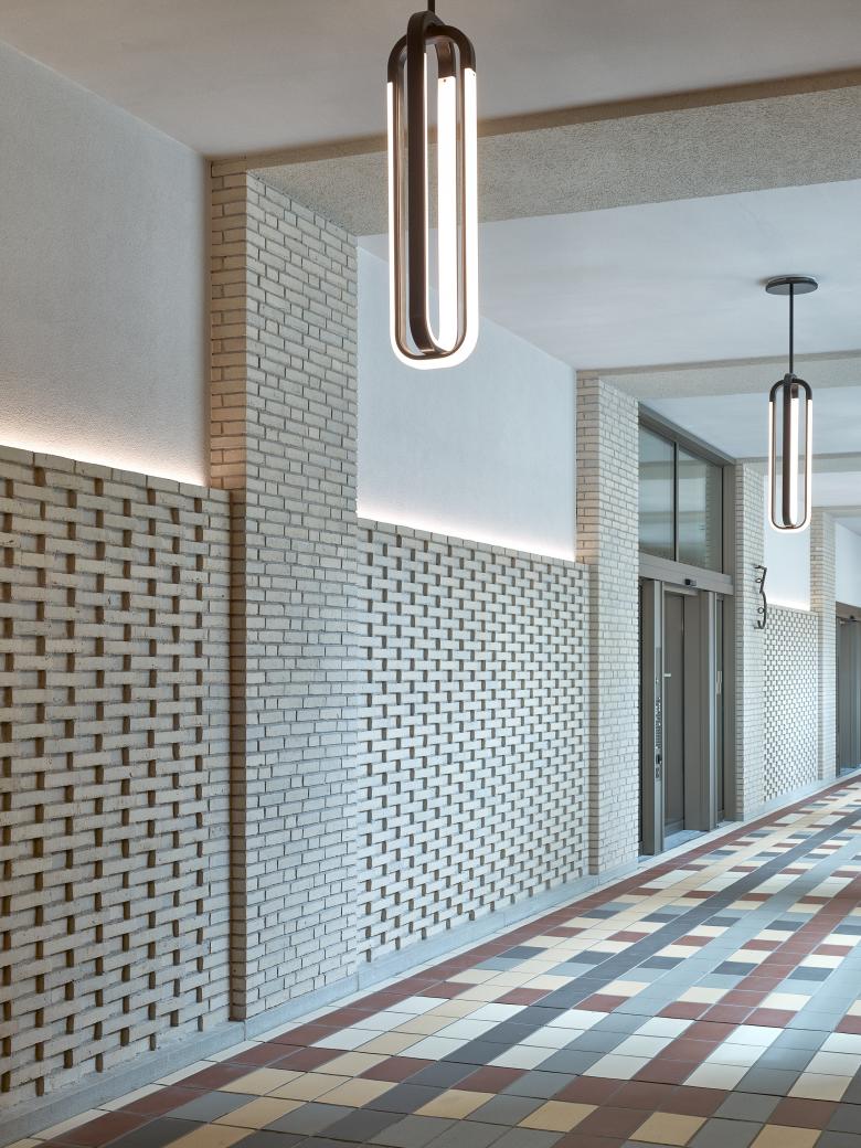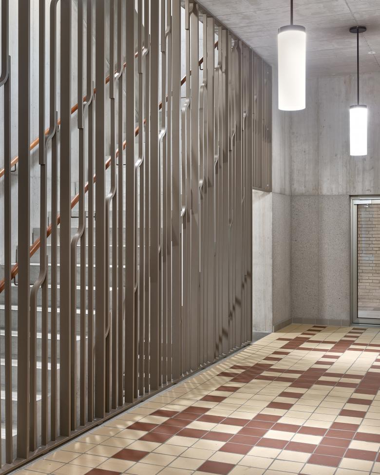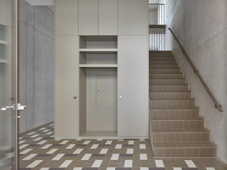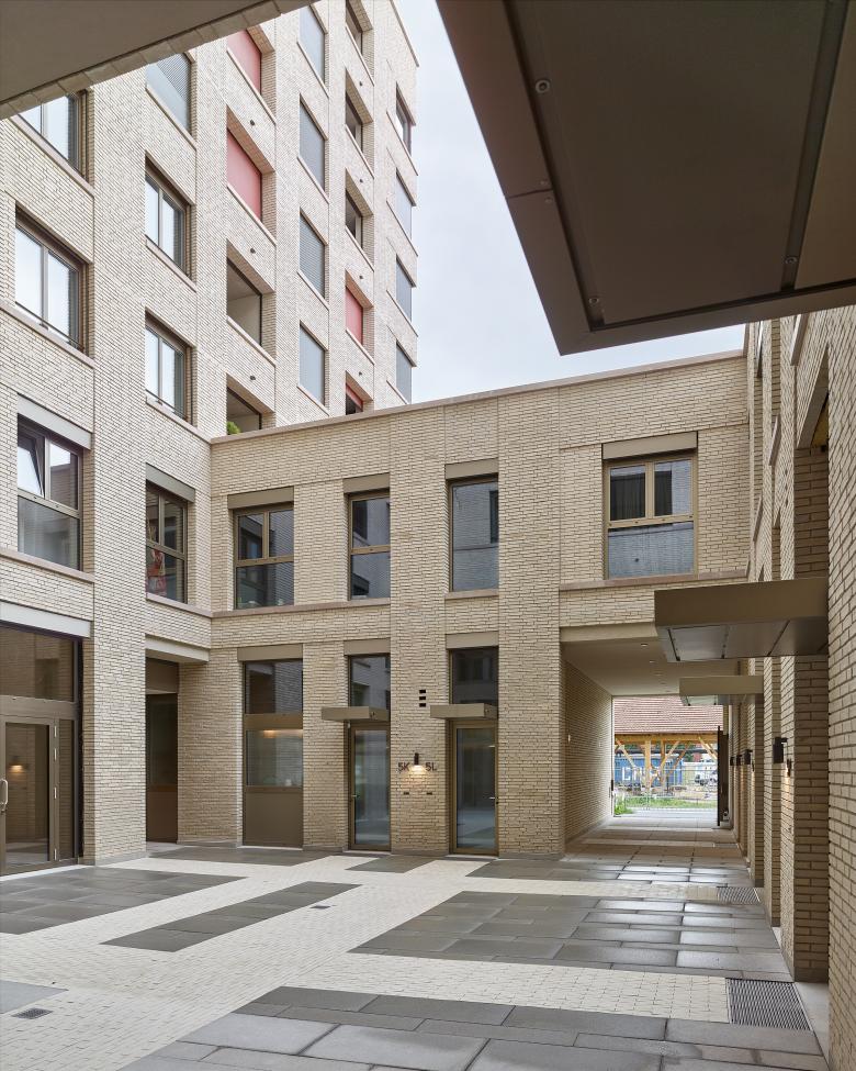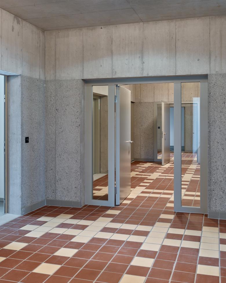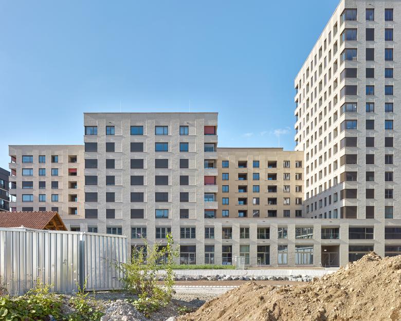 Das Programm für diesen offen konzipierten Stadtblock im ehemaligen Industriegebiet von Schlieren beinhaltet Alterseinrichtungen, Wohnateliers für ‚Dinks‘ am Park, Wohn-Cluster für experimentellere Lebensformen im Turm sowie Büros, Läden, Caféteria mit zuschaltbarem Mehrzweckraum / Was im grossen Massstab der Park vollzieht, bietet innerhalb des Blocks eine längs durchs EG gesteckte ‚Rue intérieure‘ / Die Materialisierung in Vollsteinklinker folgt der Tradition bei Industriebauten im Limmattal und entspricht der grossvolumigen Bebauungstypologie.