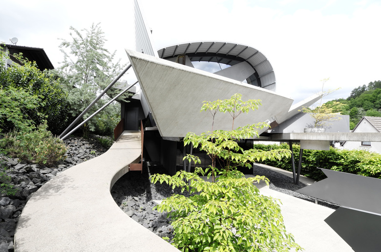 Inspiriert durch die Geometrien und Raumwirkung von Bergwerksstollen entwickelte sich die Grundform des Gebäudes. Symbolhaft wird durch die asymmetrische Bogenkonstruktion des Gebäudes ein Bergwerksstollen interpretiert. Eine geschwungene Betonrampe führt in das Gebäude. Der hohe Innenraum wird geprägt durch die kraftvollen Geometrien der Bogenkonstruktion und der skulptural ausgeformten und abgehängten Galerieebene. Es entsteht ein spannendes und lebhaftes Raumgefüge. Die Oberflächen aus Holz im Innenraum erzeugen eine behagliche Atmosphäre. Die große vorgelagerte Terrasse wirkt wie ein Bühnenbild und gibt der Architektur eine großzügige Tiefe. Aspekte der Nachhaltigkeit werden durch den gezielten Einsatz der Baustoffe berücksichtigt. Das Untergeschoß ist aus Sichtbeton. Der Hauptbaukörper besteht aus einer Holzkonstruktion mit vorgefertigten Holzständerelementen. Geheizt und gekühlt wird über Erdwärme.