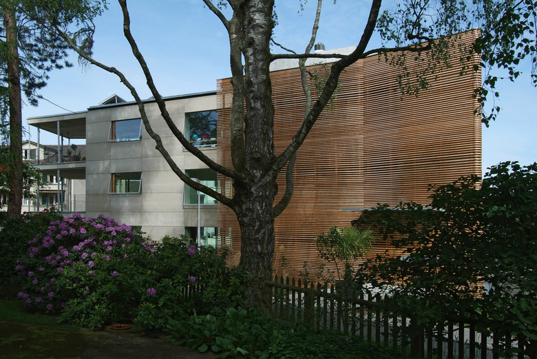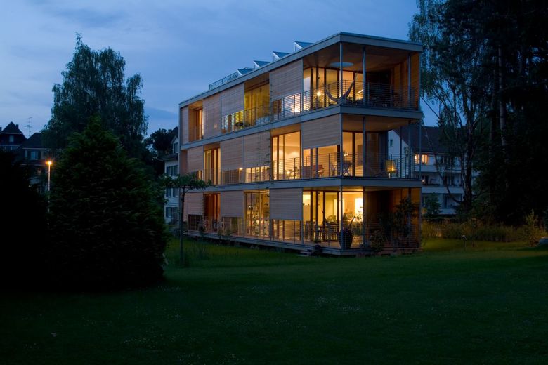 Wo noch vor Jahresfrist drei alte Autounterstände zerfielen, steht heute das erste Minergie-P-ECO Haus der Schweiz. Fremd mutet der Wohn- und Lebensraum für drei Familien im bernischen Liebefeld nur auf den ersten Blick an. Mit einer Formsprache, die sich an den umliegenden Miethäusern aus den 60er Jahren orientiert, wird bewiesen, dass energieeffizientes und ökologisches Bauen nicht bloss in Einfamilienhaus-Siedlungen passt.