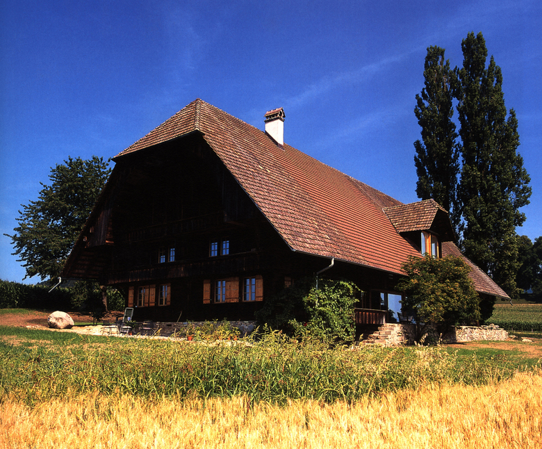 An aussergewöhnlicher Lage, Nahe dem Gerzensee, mit herrlicher Sicht auf die Berner Alpen liegt das längere Zeit nicht mehr bewohnte Bauernhaus. Das intakte, einfache und voluminöse Gebäude wurde im Stallbereich ausgekernt und eine räumlich vielschichtige Wohnsituation realisiert. Im Wohnteil zeigen die belassenen Strukturen bewusst die Geschichte des Hauses. Differenzierte Eingriffe bei den Fassaden ermöglichten neue zurückhaltend eingefügte Verglasungen und den Einbau von denkmalschutzkonformen Fenstern. Der gesuchte starke Bezug zum Aussenraum ist in der Eingangszone unmittelbar.