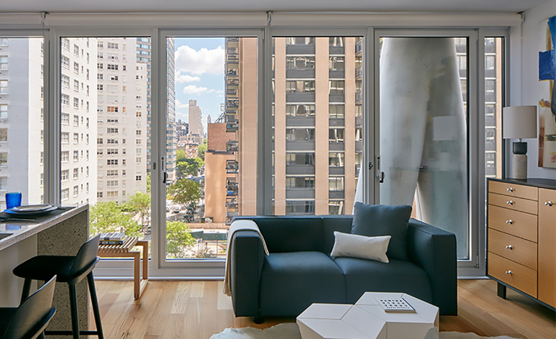 Our client wanted a solution that maximized floor area on a long narrow site on the Upper West Side of Manhattan. They did not want an all glass building, but wanted the benefits of large windows without compromising energy efficiency.