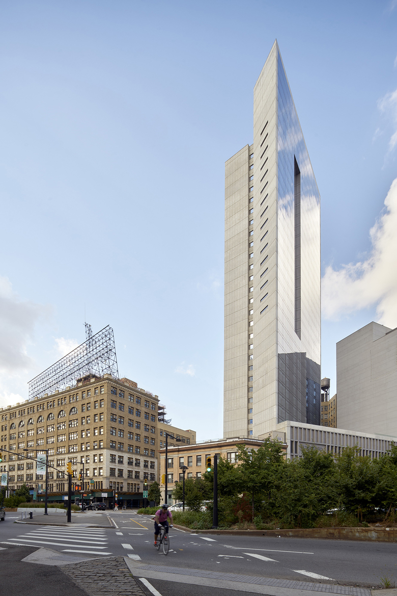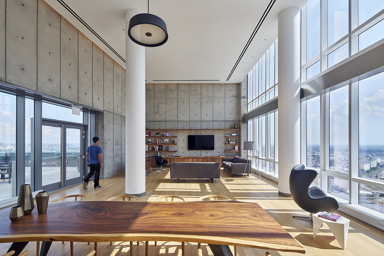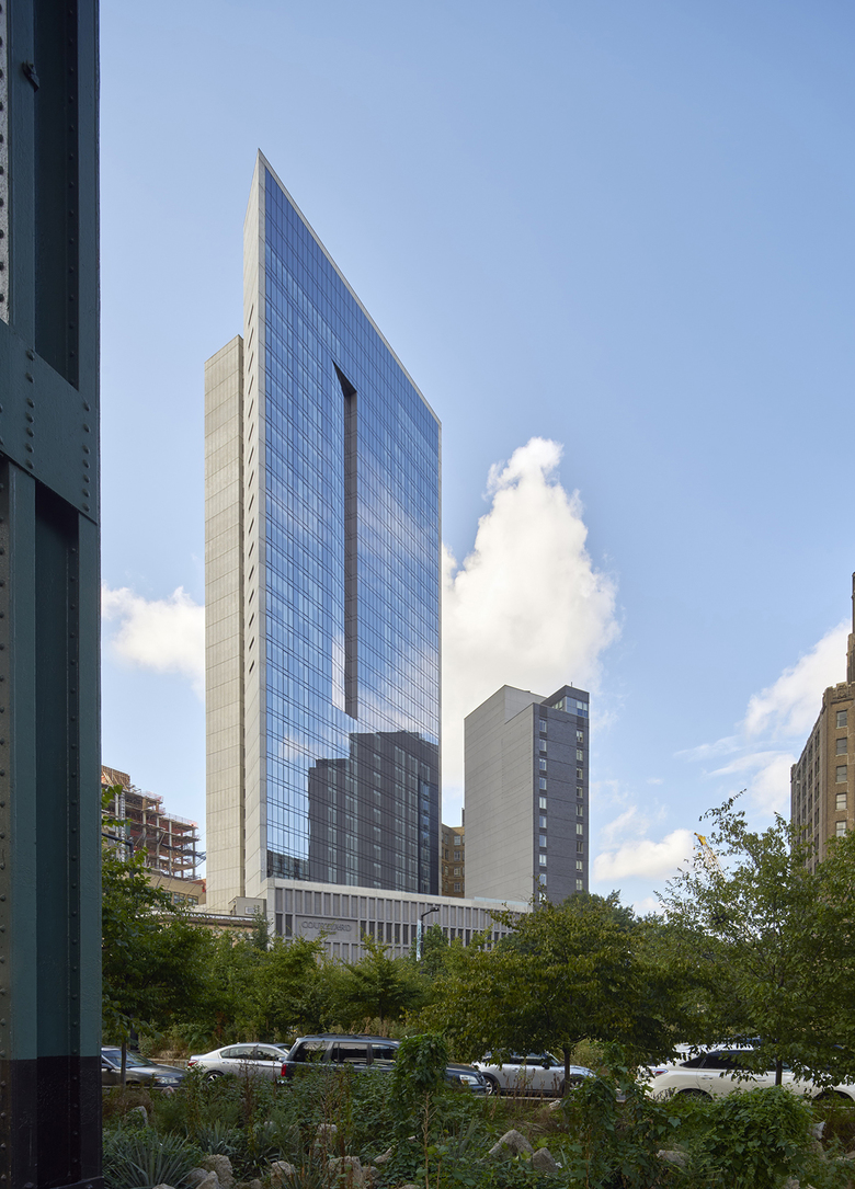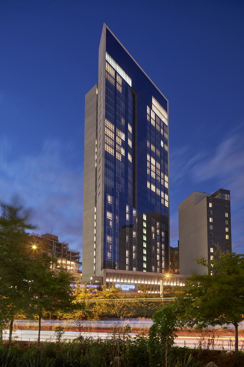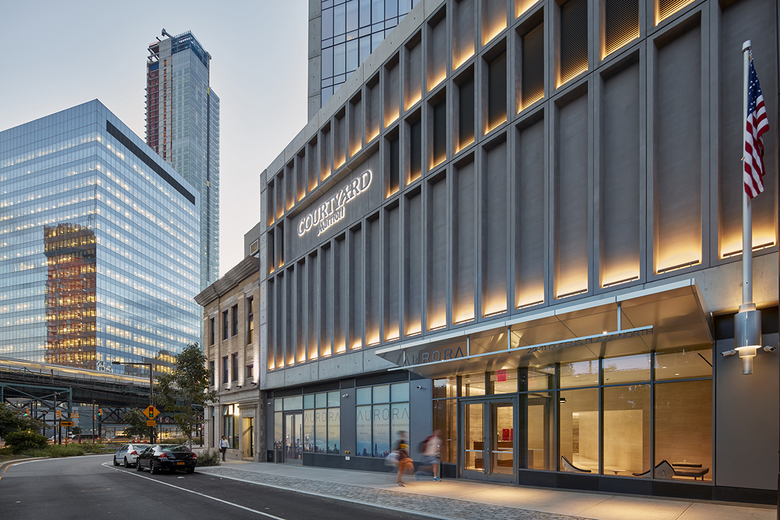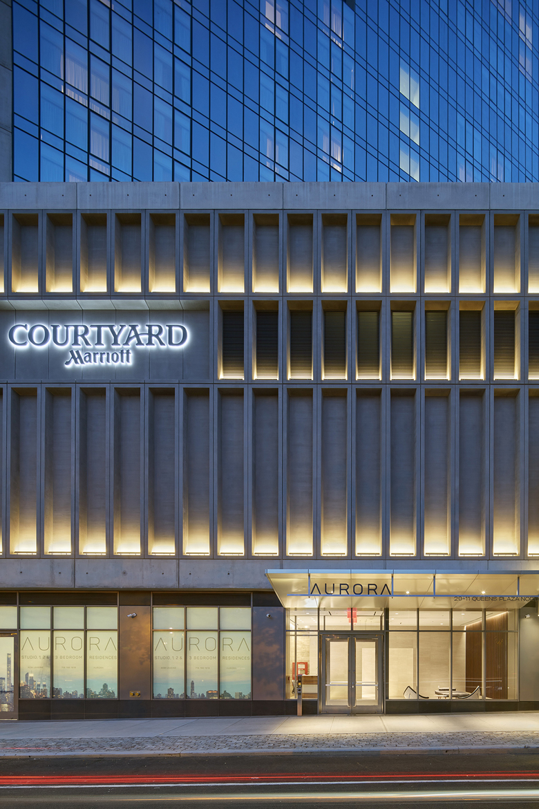 The Long Island City Marriott is a new 33-story hotel and residential tower, located in Long Island City, Queens. The 228,000 SF building includes a 160-key hotel on the lower 10 floors, and 16 floors of residential above. A 3-story podium includes a restaurant/bar and a business center. Below-grade space includes a 1,200 SF gym and conference space. The rooftop, with views to Manhattan, includes a second gym, a lounge, and an outdoor landscaped deck.