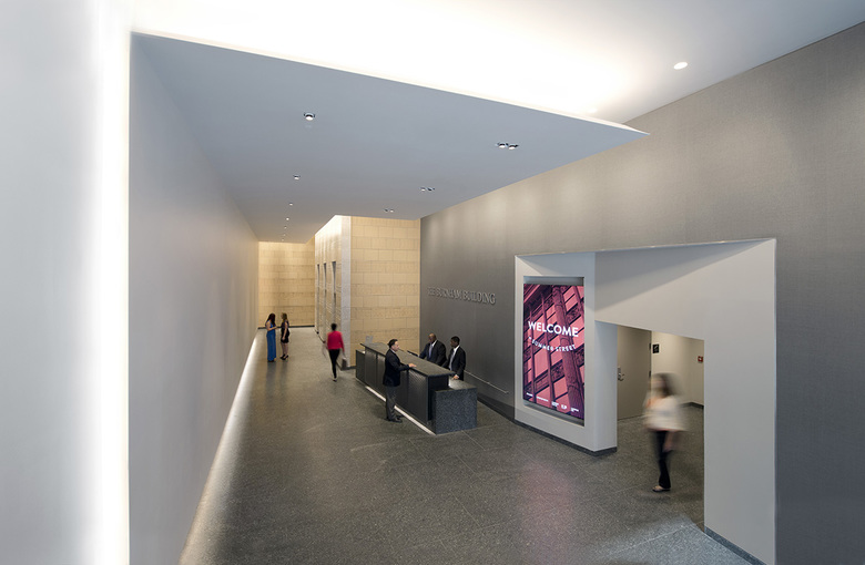 Old photographs and drawings were studied, and compared to original materials that were found on the building site. New MBTA entrances were integrated with the building design, and a new office lobby integrates the same heavy terra cotta system that was used on new areas of the exterior wall.