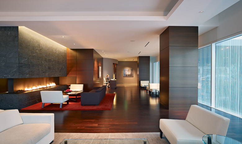 At 645 feet, the tower is the fourth-tallest structure on the city's skyline. The exterior is designed to create the impression of a translucent crystal, with materials that incorporate a variety of glass and metal fins to craft a sense of lightness and transparency. The tower's slender proportions, combined with clean lines and a sleek profile, visually reinforce the elegance of the crystalline character. The exterior profile has been sculpted with chamfered corners and faceted planes creating a perception that the building’s silhouette shifts as the light changes throughout the day.