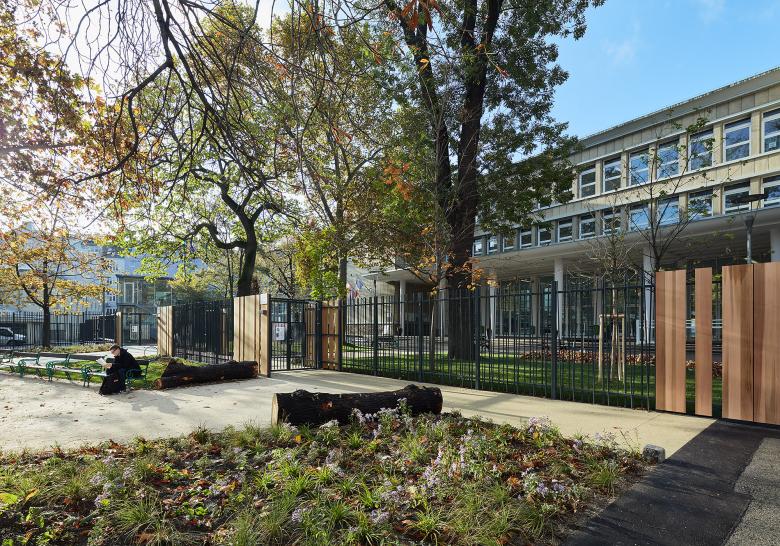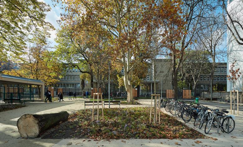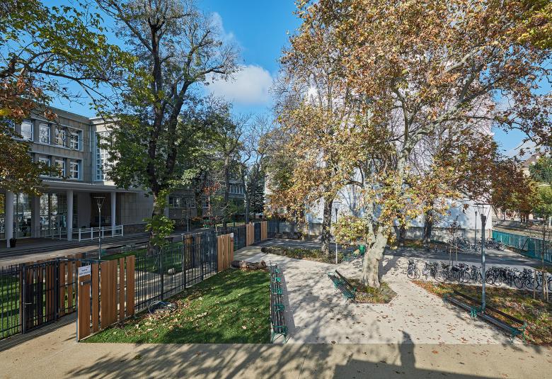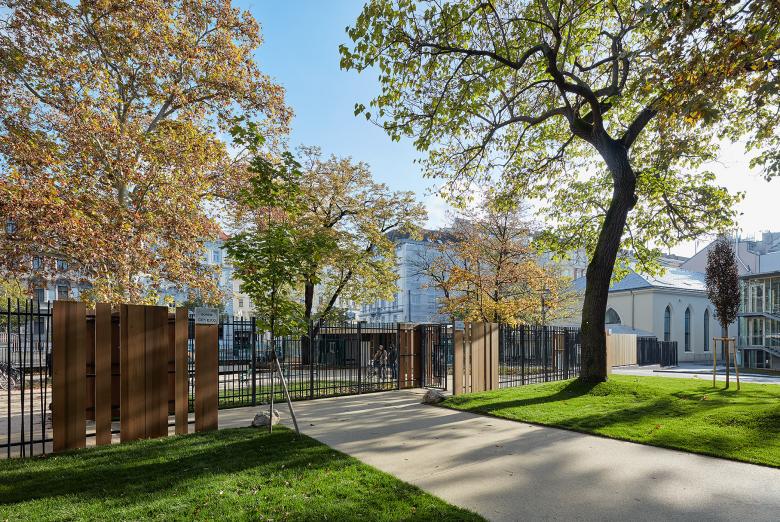 Das Lycée français de Vienne ist eine von 488 französischen Schulen im Ausland, die das französische Schulnetzwerk AEFE (Agence pour l’Enseignement Français à l’Étranger) bilden. Die Bildungseinrichtung steht unter der Schirmherrschaft der AEFE und unterliegt den Weisungen des französischen Botschafters in Österreich und des Schulleiters. In der ersten Bauphase des Freiraumkonzeptes wurden auf dem Vorplatz unterschiedlichste Pflanzbeete verwirklicht. Der Platanenplatz in der Mitte bildet den gesellschaftlichen Treffpunkt vor der Schule.Darüber erstreckt sich ein Weg aus beige und quarzfarbigem Terraway, der wunderbar mit dem Fassadenstil der Schule harmoniert. Rechts und links davon erstrecken sich zwei grüne Rollrasenflächen. Im Osten sind die modern angelegten Fahrradabstellplätze und Scooter Parkplätze auf einer wassergebundenen Decke situiert. In einer zweiten Bauphase sollen ein Wasserbecken, Sitzgelegenheiten in Form von innovativen Holzdecks folgen.