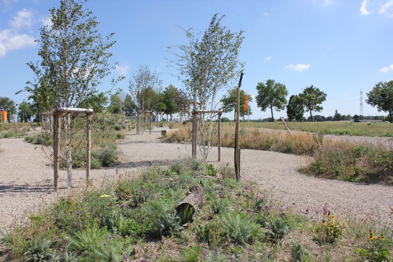 Die Leitidee besteht darin, die Vegetation mit Gehölzen wie Birken, Kiefern und Rosmarinweide zu ergänzen und so eine dynamische Sukzession einzuleiten. Der Sukzessionspark zeigt eine beeindruckende vegetationsökologische Entwicklung auf einer Kiesfläche, die mit Wiesensalbei, Kamille, Oregano, Nachtkerze, Königskerze sowie zahlreichen Wildkräutern besät und mit Stauden wie Steppenkerzen, Wolfsmilchgewächsen und Kandelaber-Ehrenpreis kombiniert wird. Gräser und Kleingehölze verweben sich mit dieser Vielfalt zu einem lebendigen Gefüge, das über die Jahre immer artenreicher wird.