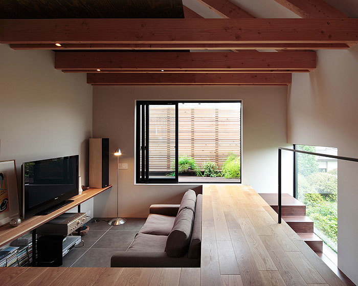 Due to Tokyo’s high land prices, plot sizes become reduced as a matter of necessity. What’s more, buildings often become even smaller in order to satisfy strict building regulations. As a result, architects working on residential projects in the Japanese capital are universally concerned with how to maximize the physical area of these buildings within a limited space, as well as how to produce a feeling of openness and breadth. Many clients are also concerned with how to provide adequate storage within a small space, and how to create a comfortable environment.